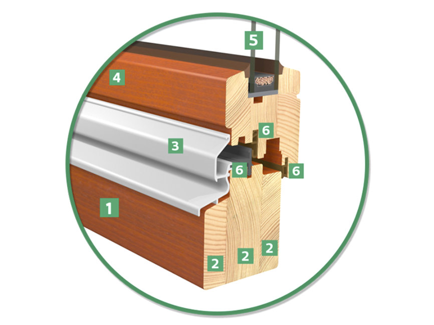 die Aluminium-Außenschale schützt das wertvolle Echtholz vor Wind und Wetter – Streichen entfällt!